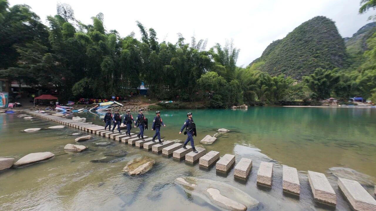 由10名精干警力組成的護(hù)旅警巡隊(duì),以“民警就是導(dǎo)游”為標(biāo)準(zhǔn),不僅熟知景區(qū)每處景點(diǎn)分布,更掌握急救技能與應(yīng)急預(yù)案。隊(duì)員日均步行巡邏里程超15公里,背包常備創(chuàng)可貼、藿香正氣水等應(yīng)急物資,累計(jì)解答游客咨詢2600余次,現(xiàn)場(chǎng)處置涉旅糾紛18起,節(jié)假日無(wú)休守護(hù)景區(qū)安全。此前,隊(duì)員黃康在響水洞景區(qū)及時(shí)救助腳踝扭傷的重慶游客,通過(guò)“綠色通道”15分鐘內(nèi)完成傷員轉(zhuǎn)運(yùn),獲游客感謝信點(diǎn)贊。