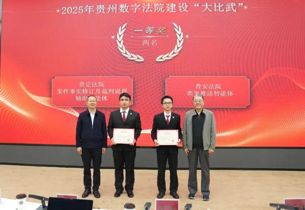 12月2日,貴州省法院舉辦2025年數(shù)字法院建設(shè)“大比武”終評評審活動。省法院黨組書記、院長茆榮華參加活動并致辭,上海交通大學(xué)凱原法學(xué)院、智慧司法研究院特聘教授許建峰,省法院二級巡視員李丹,省委政法委一級調(diào)研員、綜治中心主任馬波,上海交通大學(xué)凱原法學(xué)院、智慧司法研究院常務(wù)副院長楊力,貴州大學(xué)大數(shù)據(jù)與信息工程學(xué)院院長田有亮,貴州民族大學(xué)數(shù)據(jù)科學(xué)與信息工程學(xué)院院長霍雨佳,西南政法大學(xué)人工智能法學(xué)院副教授、法律科技研究院律泰法律科技實(shí)驗(yàn)室副主任顏卉擔(dān)任專家評委。省法院在家院領(lǐng)導(dǎo)、各部門負(fù)責(zé)人及各參賽法院相關(guān)人員參加活動。