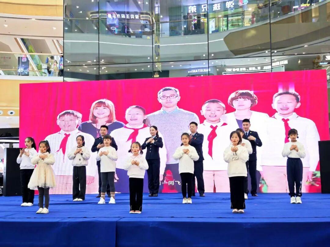 圖為黔南州稅務(wù)局普法工作者與小朋友們共同演繹手勢(shì)舞《憲法伴我成長(zhǎng)》。