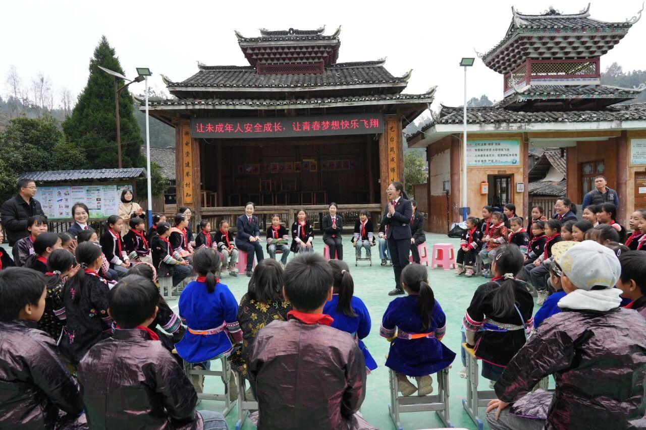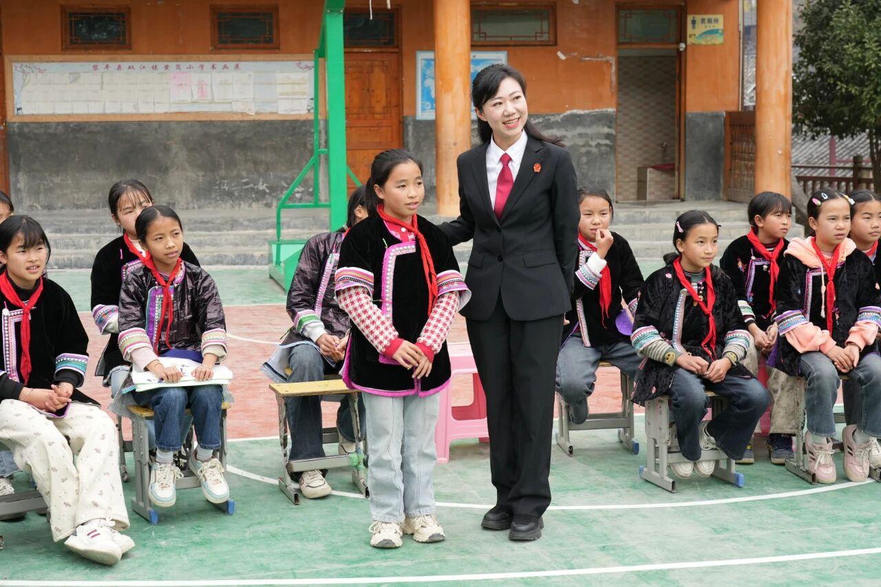 為切實加強青少年法治教育,筑牢未成年人健康成長法治防線,近日,貴州省高級人民法院、黔東南州中級人民法院、黎平縣人民法院,在黎平縣雙江中、小學(xué)開展“‘鴻雁’護航助成長 法治陽光照侗寨”法治宣傳進校園活動。