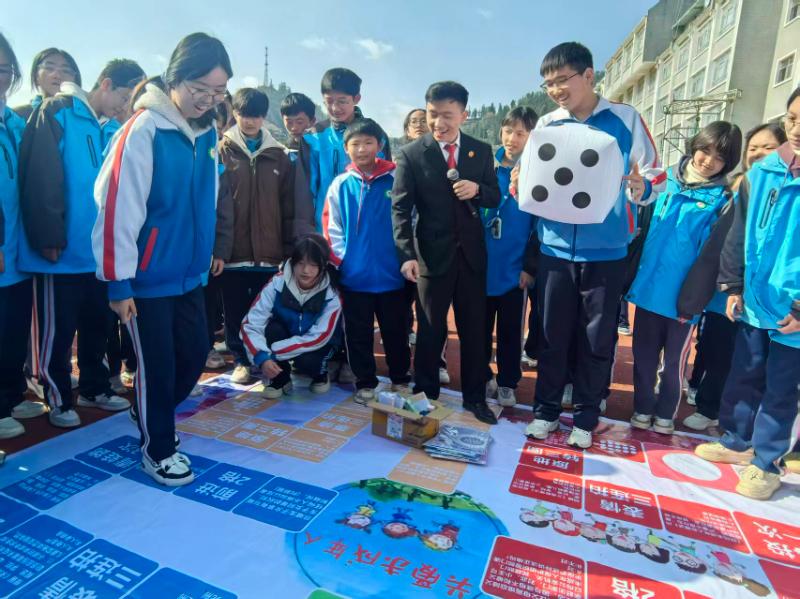 活動(dòng)中,雙鳳人民法庭庭長(zhǎng)支蘭芬以觀看預(yù)防未成年人犯罪警示教育片為切入點(diǎn),結(jié)合真實(shí)涉未成年人案件,深入剖析未成年人違法犯罪的誘因。同時(shí),干警通過“普法飛行棋”“普法大轉(zhuǎn)盤”“有獎(jiǎng)問答”等趣味游戲,搭建普法互動(dòng)平臺(tái),讓學(xué)生在歡樂參與中深化法律知識(shí)記憶,現(xiàn)場(chǎng)氛圍熱烈。