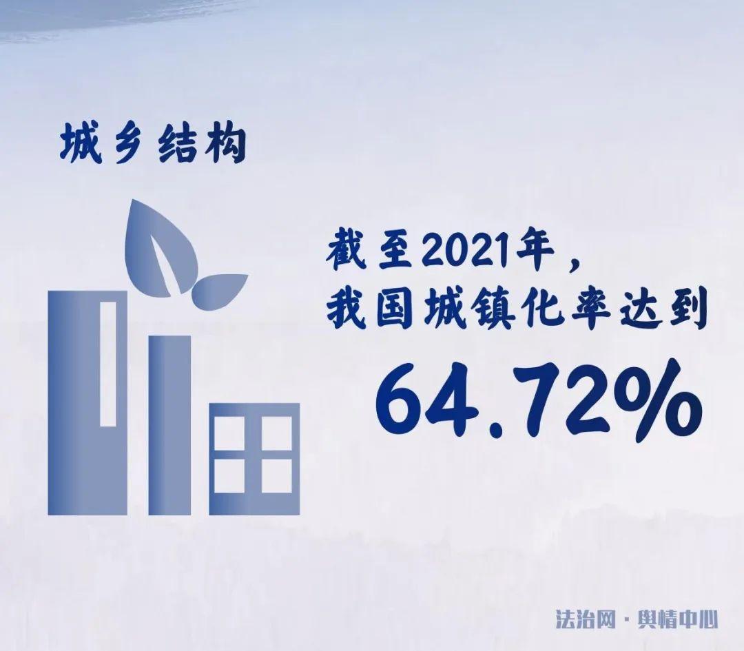 從城鄉(xiāng)結(jié)構(gòu)來看,1982年,我國是一個農(nóng)村人口占總?cè)丝?0%的典型農(nóng)業(yè)型國家。此后,通過不斷健全各項(xiàng)制度,多舉措改革創(chuàng)新,提高社會流動性,使得中國社會走上了城市化發(fā)展道路,城市活力得到了進(jìn)一步釋放。我國實(shí)現(xiàn)了從落后的鄉(xiāng)村型社會向富足的城鄉(xiāng)融合型社會轉(zhuǎn)變。截至2021年,我國城鎮(zhèn)化率達(dá)到了64.72%。