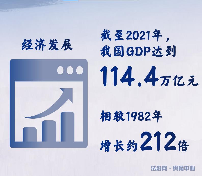 從經(jīng)濟(jì)發(fā)展來看,憲法直接或間接保障經(jīng)濟(jì)制度,通過監(jiān)督手段不斷調(diào)整社會經(jīng)濟(jì)制度的結(jié)構(gòu),實(shí)行社會生產(chǎn)方式與生產(chǎn)力的最佳結(jié)合。我國實(shí)現(xiàn)了封閉型經(jīng)濟(jì)弱國向開放型全球經(jīng)濟(jì)大國的轉(zhuǎn)變,國民生產(chǎn)總值從1982年的5373億元躍升到2021年的114.4萬億元,增長了約212倍。