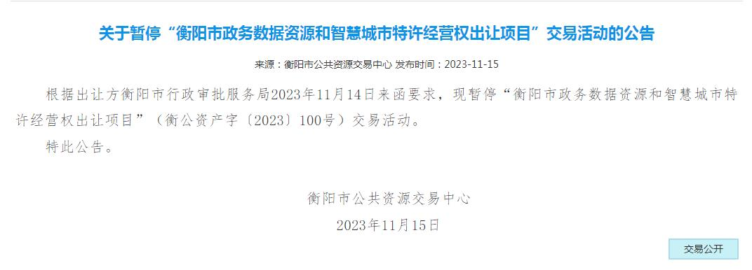 5.人民數(shù)據(jù):衡陽轉(zhuǎn)讓政務(wù)數(shù)據(jù)經(jīng)營權(quán)為何被叫停?