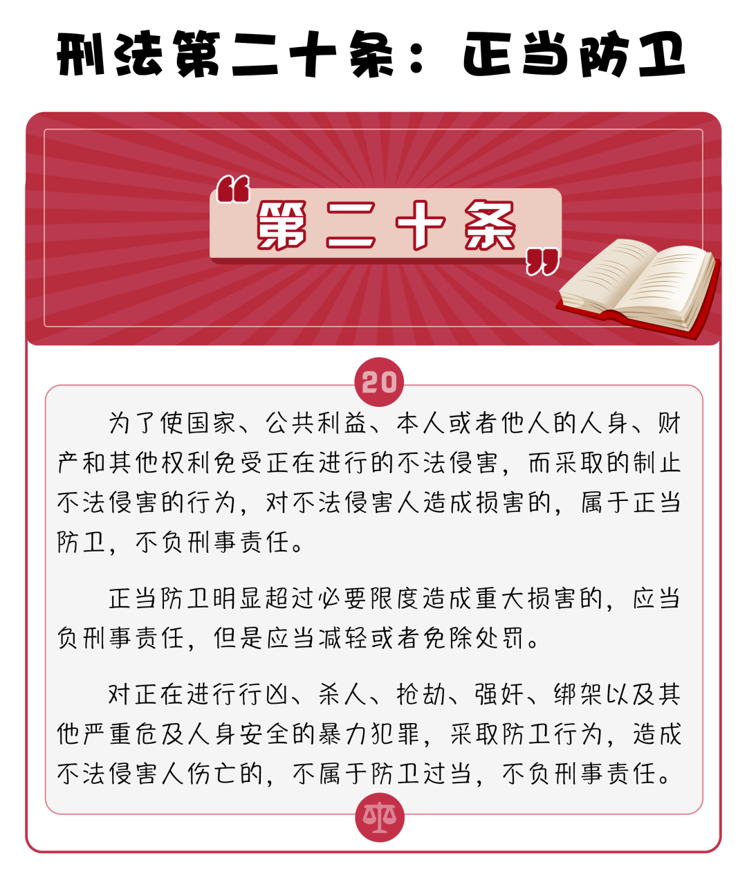 2024年2月10日,電影《第二十條》上映,講述了正當防衛(wèi)、見義勇為陷入“法”“理”“情”沖突時,檢察機關如何準確適用《中華人民共和國刑法》第二十條,高質(zhì)效辦案的故事。影片一經(jīng)上映便引發(fā)輿論廣泛關注。下面,請跟隨小編腳步,一起了解刑法第二十條吧!