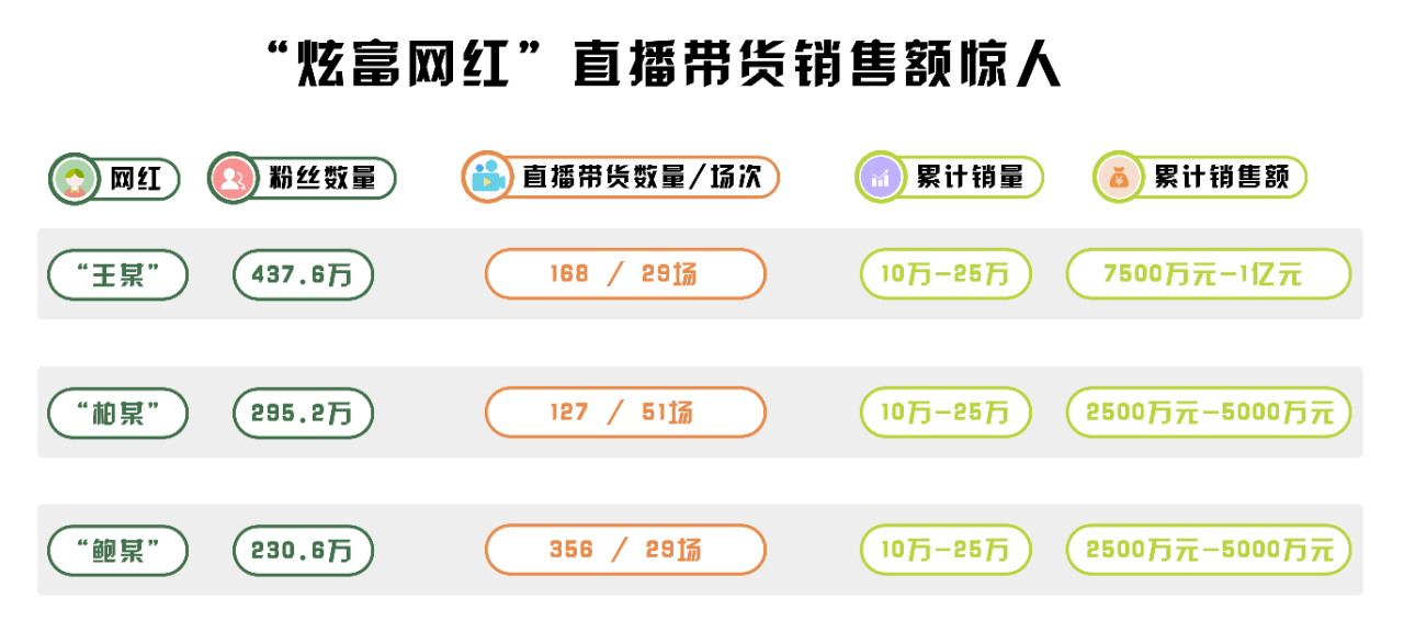 1.“炫富網(wǎng)紅”直播帶貨銷售額驚人