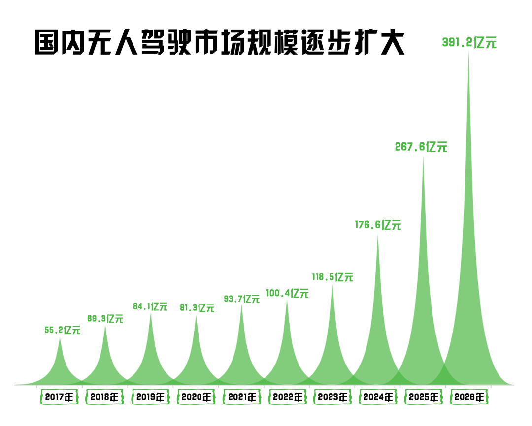 從艾媒咨詢發(fā)布的數(shù)據(jù)來看,我國無人駕駛市場規(guī)模呈上升趨勢,預計到2026年,我國無人駕駛市場規(guī)模有望突破391億元,持續(xù)上漲的市場規(guī)模,也預示著無人駕駛明朗的未來。