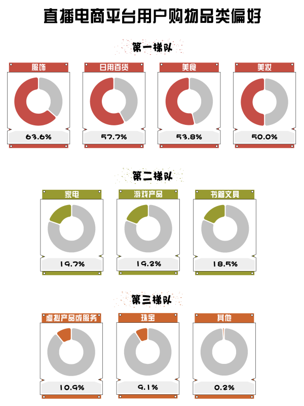根據(jù)微播易、蟬媽媽等聯(lián)合發(fā)布的《2023年中國直播電商機(jī)會(huì)洞察報(bào)告》顯示,直播電商平臺(tái)用戶購物品類偏好中,美食位列第一梯隊(duì),占比達(dá)到53.8%,反映了公眾對(duì)食品消費(fèi)從吃得飽到吃得好的轉(zhuǎn)變。