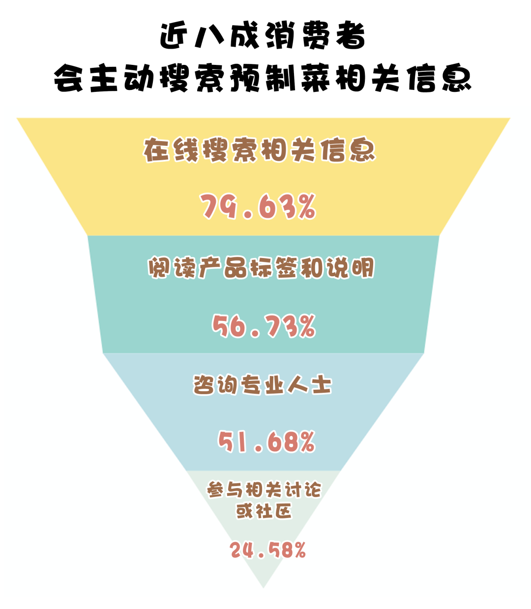 預制菜食品安全問題令受消費者尤為關注。從艾媒咨詢發(fā)布的數(shù)據(jù)來看,近八成的消費者會主動搜索預制菜相關信息,超過五成的消費者會通過閱讀產品標簽和說明、咨詢專業(yè)人士來確保自己吃到的是安全健康的預制菜。