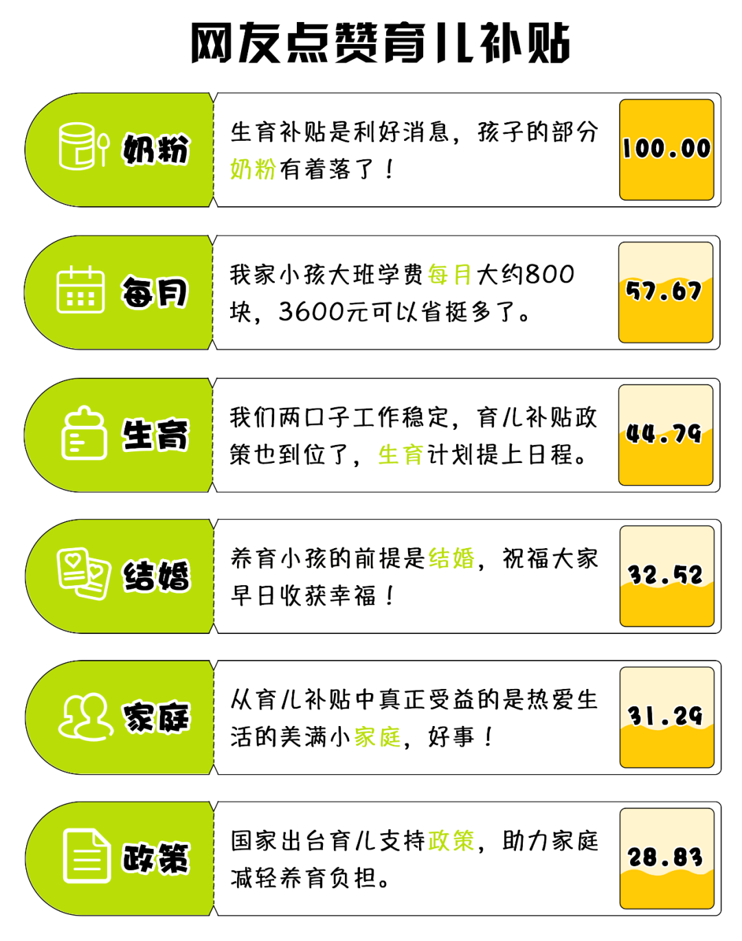 方案一經(jīng)發(fā)出,便迅速聚攏各方目光。“#發(fā)放育兒補(bǔ)貼#”“#育兒補(bǔ)貼制度實(shí)施方案發(fā)布#”相關(guān)微博話題,閱讀量均突破1.2億。“您家孩子是否符合申領(lǐng)要求”“您家孩子‘掙’到3600元了嗎”更成為了寶媽寶爸們?nèi)粘:训男聝?nèi)容。
