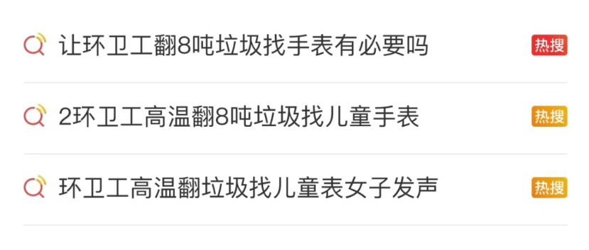 大同環(huán)衛(wèi)工翻垃圾幫游客找手表事件相關(guān)微博熱搜話題