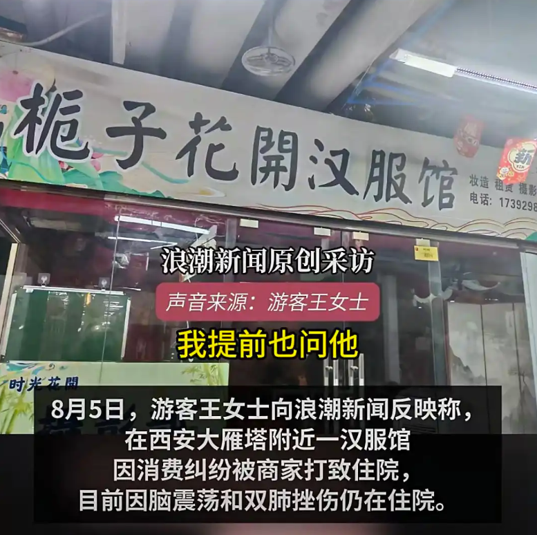 8月3日至4日,抖音用戶“寶地二樓丫丫拖鞋泳衣”發(fā)布多個視頻稱,其一行人在西安旅游拍照遭遇“黑店”,梔子花開漢服館不履行“微信選片”承諾,致其在店內被拖延六七個小時,該游客找老板理論時卻遭到毆打,聲稱“被打成腦震蕩、雙肺挫傷,孩子無人管餓得直哭,警方等有關部門不作為”。部分網民留言批評涉事商家“給西安形象抹黑”,支持該女子維權。8月6日,浪潮新聞單方面采訪當事女子,該女子稱其因不滿拍攝和選片向店里的其他游客吐槽,被商家認為是“鬧事”影響門店生意,遭揮拳打暈。有媒體根據(jù)此報道設置“游客在西安因消費糾紛遭商家毆打”等話題,同時該女子控訴“我們來西安是旅游的,不是來挨打的”短視頻在大象新聞、溫州都市報等媒體的傳播助推下,引起群情激憤,涉事商家遭到網民譴責。