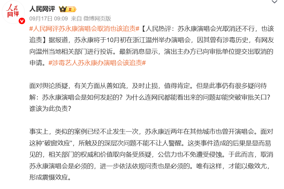 6.蘇永康演唱會主辦方申請取消,涉毒藝人不能復(fù)出是底線