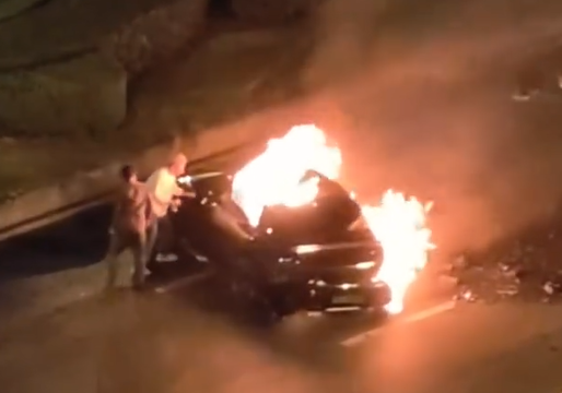 (網(wǎng)傳相關(guān)車輛失控后起火現(xiàn)場視頻截圖 來源:澎湃新聞)