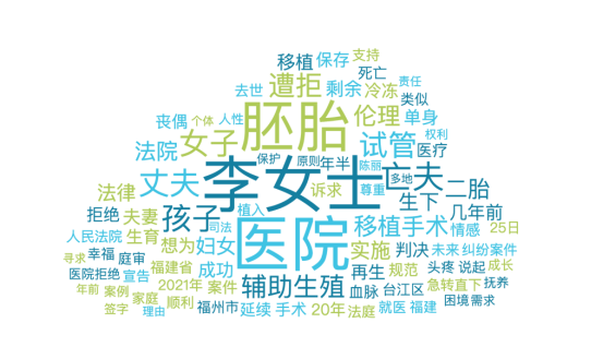 截至10月30日20時,相關(guān)信息3124條,相關(guān)微博話題閱讀量累計達(dá)9838萬次。其中,“胚胎”“移植手術(shù)”“輔助生殖”是輿論熱詞。