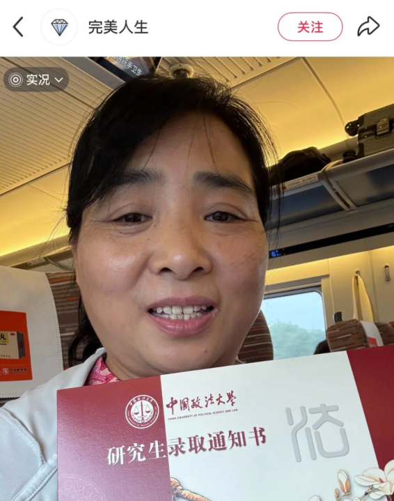 8月30日,社交平臺上流傳著一則“54歲河南阿姨考上中國政法大學(xué)研究生”的勵志帖文。該網(wǎng)民賬號名為“美麗人生”,稱自己用了30年時間,從河南的縣城考到北京的高校,現(xiàn)在在去北京西站的火車上,帖文所配照片為一名中年女性與一張“中國政法大學(xué)研究生錄取通知書”的合影。帖文內(nèi)容引發(fā)關(guān)注,獲部分網(wǎng)民稱贊“勵志”。9月1日,該網(wǎng)民在另一篇帖子中回應(yīng)“大齡研究生無意義”等質(zhì)疑,稱“退休后時間很充?!薄爸灰钪?,任何時候做任何事都不為晚”,再次引發(fā)眾多網(wǎng)民留言支持。9月3日上午,中國政法大學(xué)黨委宣傳部向澎湃新聞回應(yīng)表示,該校已錄取的2025級碩士新生中,“沒有50歲以上的、河南籍的學(xué)生”,網(wǎng)民直呼“又是一起編造的‘勵志’騙局”。另據(jù)媒體消息,該賬號IP屬地顯示為北京,粉絲1907人,獲贊與收藏高達(dá)18.8萬。目前該賬號被禁言,內(nèi)容已清空。