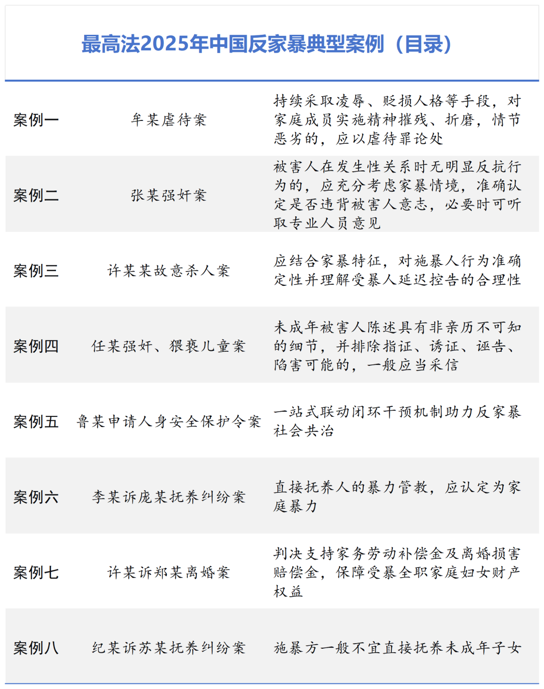 據(jù)最高法官網(wǎng)11月21日消息,最高人民法院從近三年生效的涉家暴案件中選擇8個典型案例公開發(fā)布。此次發(fā)布的案例主要有以下方面特點: