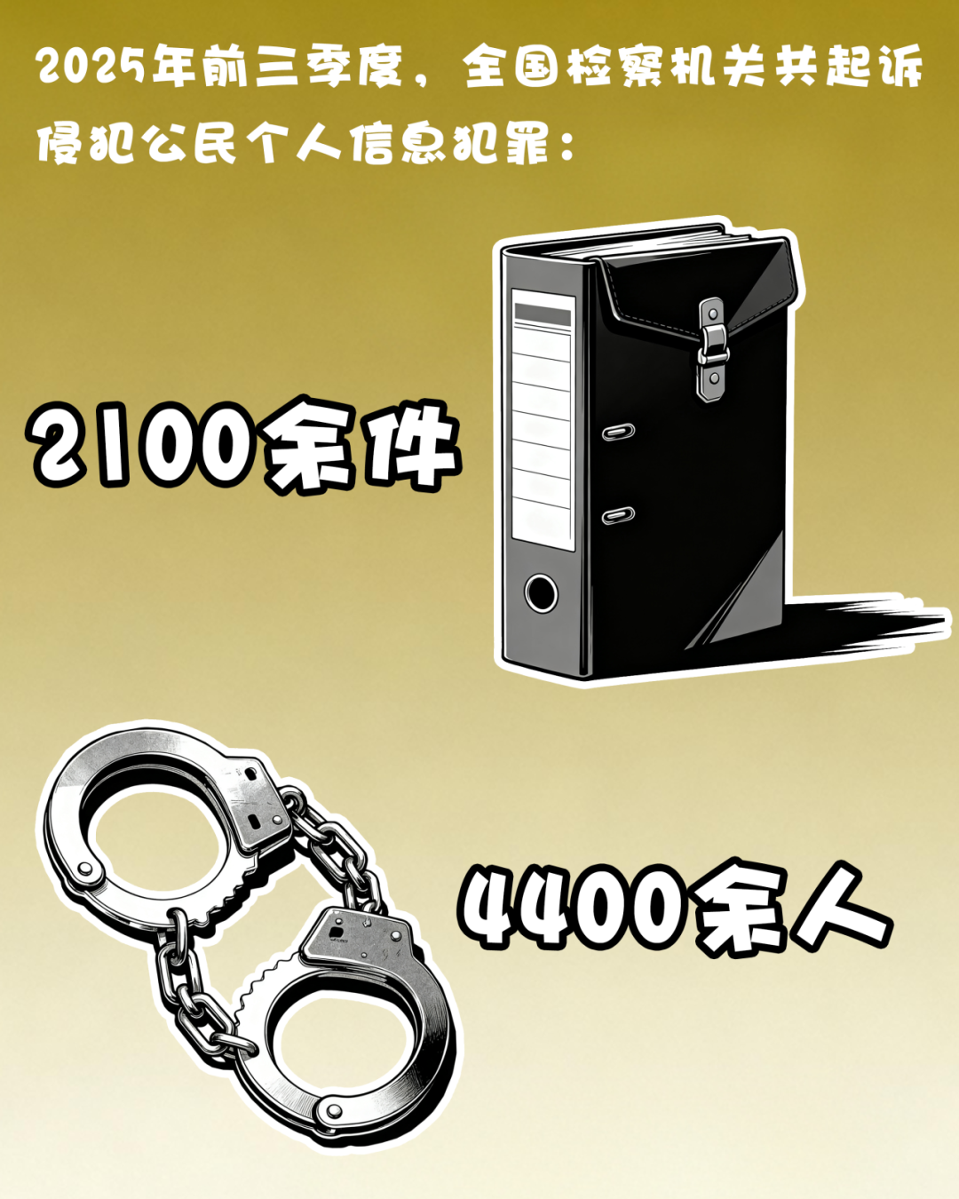 2024年,檢察機關起訴利用網絡實施的侵犯公民個人信息犯罪2458人;2025年前三季度,全國檢察機關共起訴侵犯公民個人信息犯罪2100余件4400余人。