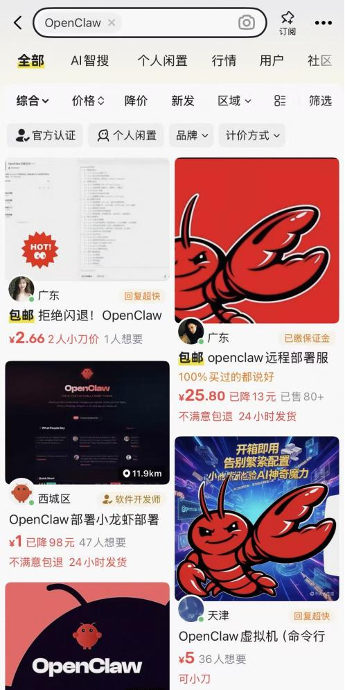 然而,“養(yǎng)龍蝦”背后亦存在不少風(fēng)險和隱患。據(jù)《新消費(fèi)日報》報道,深圳一名程序員分享在安裝OpenClaw的第三天,因API密鑰被盜,在凌晨收到了高達(dá)1.2萬元的Token賬單。閑魚平臺上,“龍蝦上門卸載”又成為新的熱門業(yè)務(wù)。