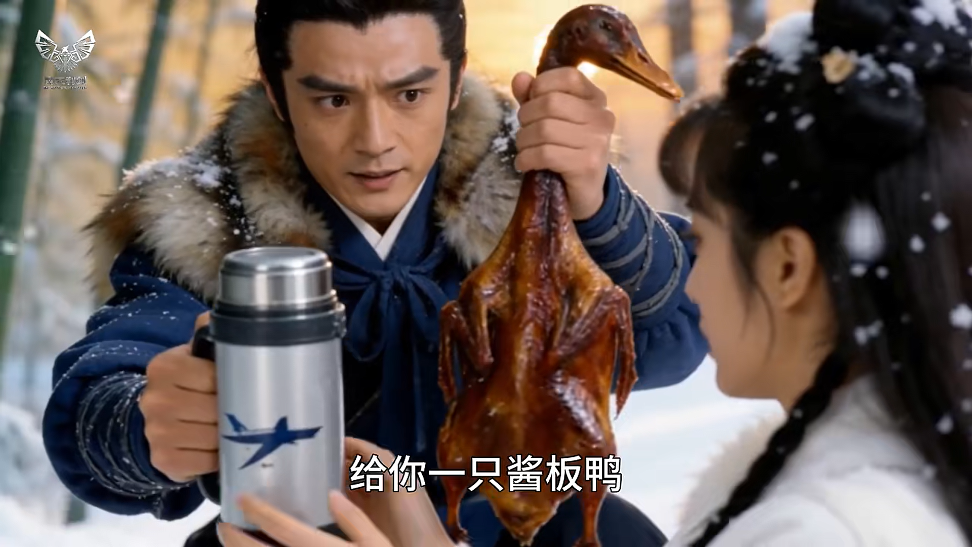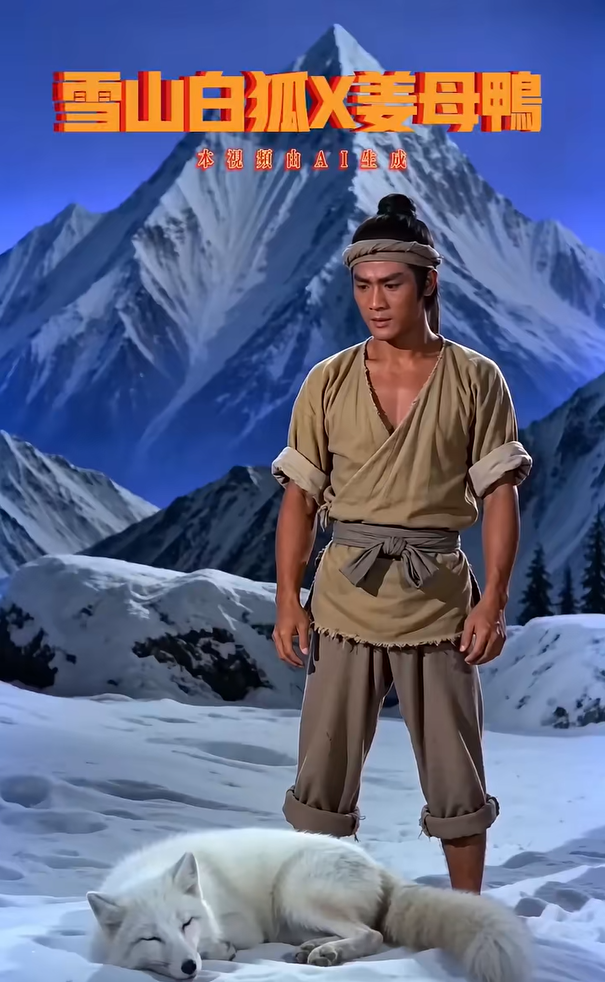 2月27日,抖音用戶“川娃醬板鴨”發(fā)布一則AI短片《雪山救狐》,視頻將“狐貍報(bào)恩”的片段改編成救狐貍時送上一只“醬板鴨”,隨后“醬板鴨”轉(zhuǎn)世成人上門復(fù)仇的故事。其中,“你可曾在雪山救過一只狐貍”“我不是狐貍,我是那只醬板鴨”等魔性臺詞與邵氏武俠風(fēng)搭配,立刻吸引網(wǎng)民關(guān)注。隨后,網(wǎng)民通過AI技術(shù),將“醬板鴨”替換為北京烤鴨、豆汁、胡辣湯等各種元素,接力改編幽默劇情,宣傳各地多樣文化。