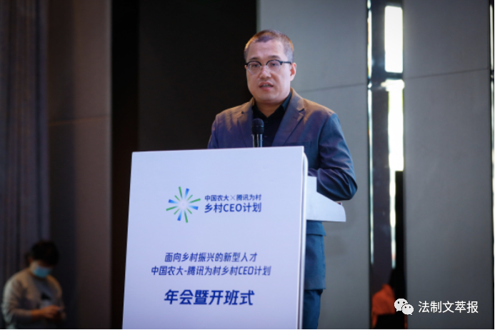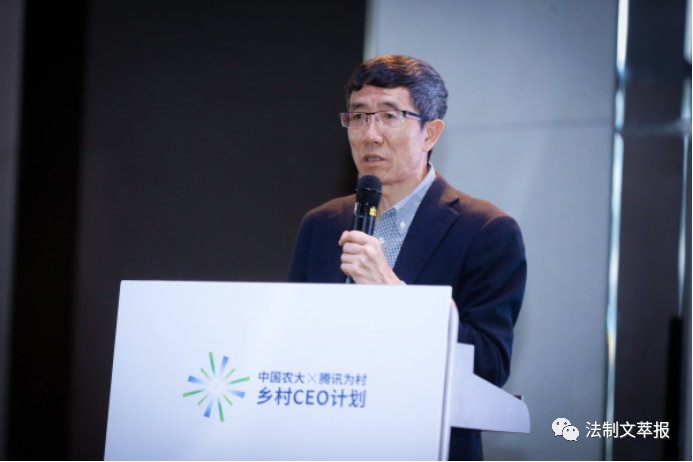 圖為中國農(nóng)業(yè)大學(xué)文科講席教授李小云,在介紹中國農(nóng)大-騰訊為村鄉(xiāng)村CEO計(jì)劃。