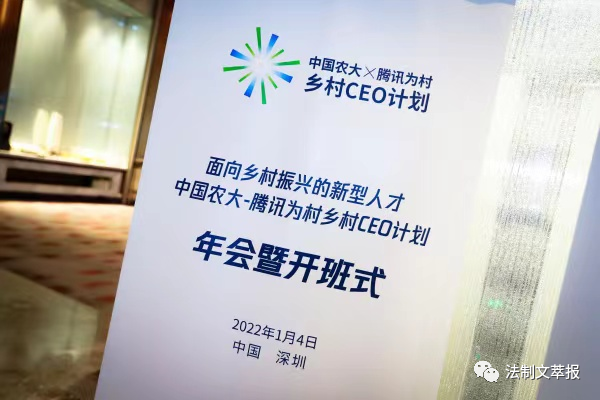2022年1月4日,中國農(nóng)大-騰訊為村鄉(xiāng)村CEO計(jì)劃在深圳開班,來自全國10個(gè)省市、20個(gè)地市州的50余名參加鄉(xiāng)村職業(yè)經(jīng)理人培訓(xùn)的學(xué)員將在此接受集中培訓(xùn)。