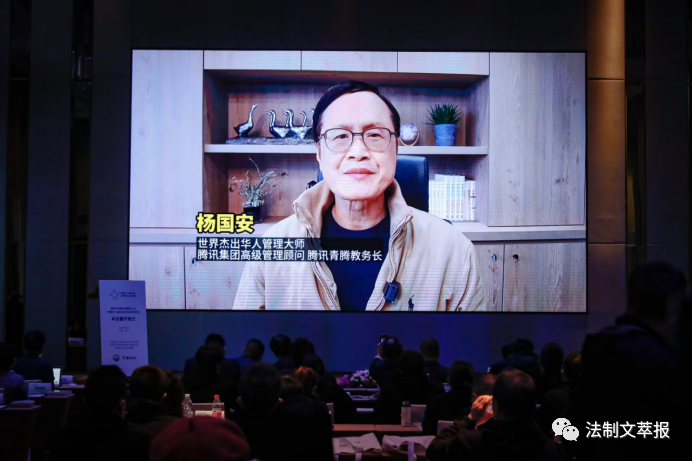 圖為騰訊集團(tuán)高級(jí)管理顧問、青騰教務(wù)長(zhǎng)楊國安在開班儀式上做主旨演講。