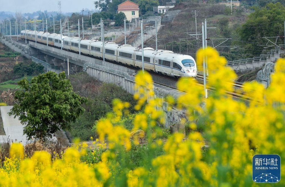 2月27日,動車組列車行駛在四川省瀘州市龍馬潭區(qū)境內。劉學懿 攝