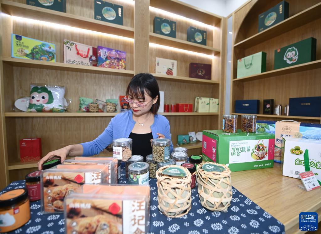4月20日,在昌化鎮(zhèn)白牛村,青年創(chuàng)客張青整理要進(jìn)行直播銷售的特色農(nóng)產(chǎn)品。記者 徐昱 攝