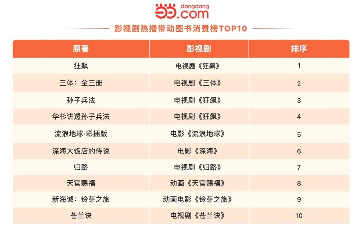 過去一年是國產(chǎn)影視劇大年,一部《狂飆》帶動全民熱讀《孫子兵法》,磕劇太上頭,原著讀到停不下來。精品影視劇熱播帶動相關(guān)圖書銷量暴漲。原著充滿想象力的文本和更完整的細(xì)節(jié),為影視劇迷帶來不一樣的內(nèi)容體驗。書影聯(lián)動,相輔相成,使精品內(nèi)容具備更旺盛的生命力和更好的IP價值,推動文化產(chǎn)業(yè)持續(xù)繁榮。