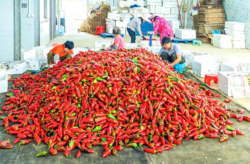 工人在分揀辣椒。黃天仕 攝