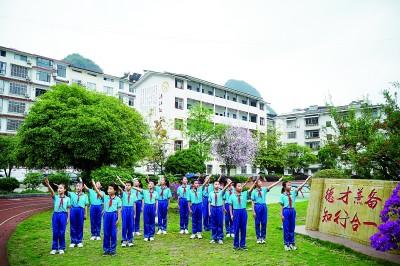 廣西陽朔實驗小學的學生們用普通話誦讀古詩。譚陽 攝