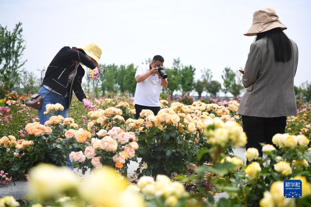 5月8日,工作人員在南陽(yáng)市月季國(guó)家林木種質(zhì)資源庫(kù)做月季特性調(diào)查。記者 張浩然 攝