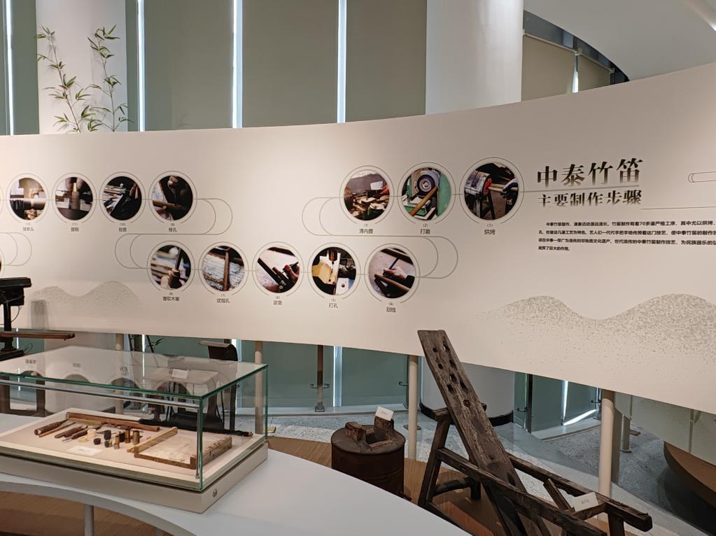 中泰竹笛展示館里展示的竹笛制作工序和制笛工具。記者 馮源 攝