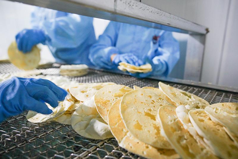 7月6日,山東省鄒平市孫鎮(zhèn)黨里等村聯(lián)合建立的燒餅廠,工人在生產(chǎn)線上包裝小餅。