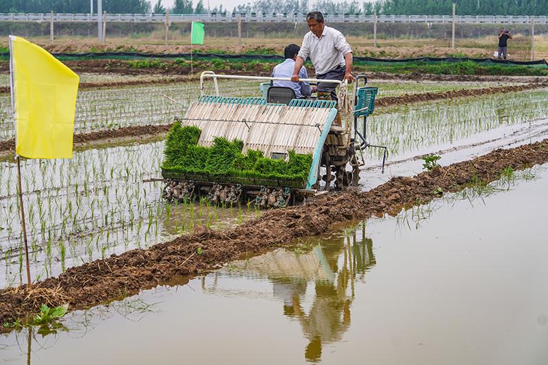 6月17日,山東省鄒平市臺(tái)子鎮(zhèn)沙里村聯(lián)合稻蟹養(yǎng)殖基地,農(nóng)戶在插秧。