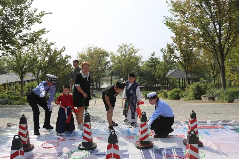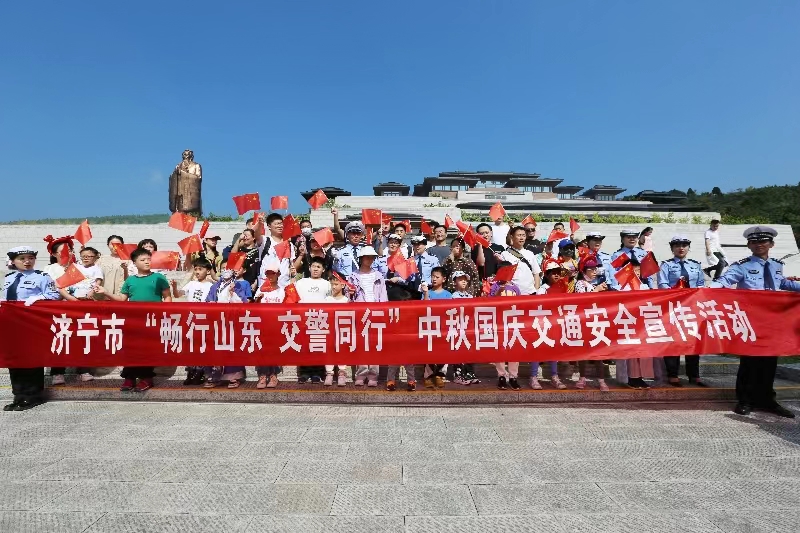 9月30日,山東省濟(jì)寧市交警在曲阜尼山圣境景區(qū)開展“暢行山東 交警同行”中秋國慶交通安全主題宣傳活動。