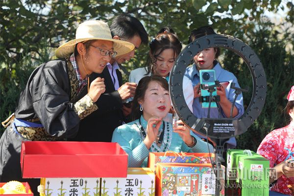 宜君縣哭泉梯田舉辦玉米蘋果豐收季網(wǎng)紅直播帶貨活動(宜君縣經(jīng)貿局供圖)
