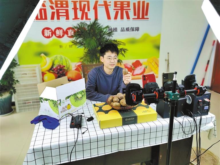 “各位直播間的朋友們,大家好,今天介紹的是我們臨渭區(qū)口感甜美的獼猴桃……”“這個獼猴桃個頭這么大,是什么品種?”“這個是‘龍珠異果’,旁邊的是‘紅陽’,這都是我們臨渭的高端獼猴桃品牌?!痹诘谌畬弥袊鴹盍柁r(nóng)業(yè)高新科技成果博覽會上,臨渭獼猴桃閃亮登場,與各地的果品“同臺競技”,以高品質(zhì)、高顏值獲得了參會嘉賓的認可。