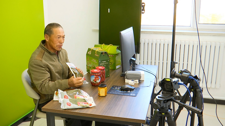 村民當(dāng)起“帶貨主播”,在線上向消費(fèi)者們介紹當(dāng)?shù)赝撂禺a(chǎn)(承德廣播電視臺(tái)供圖)