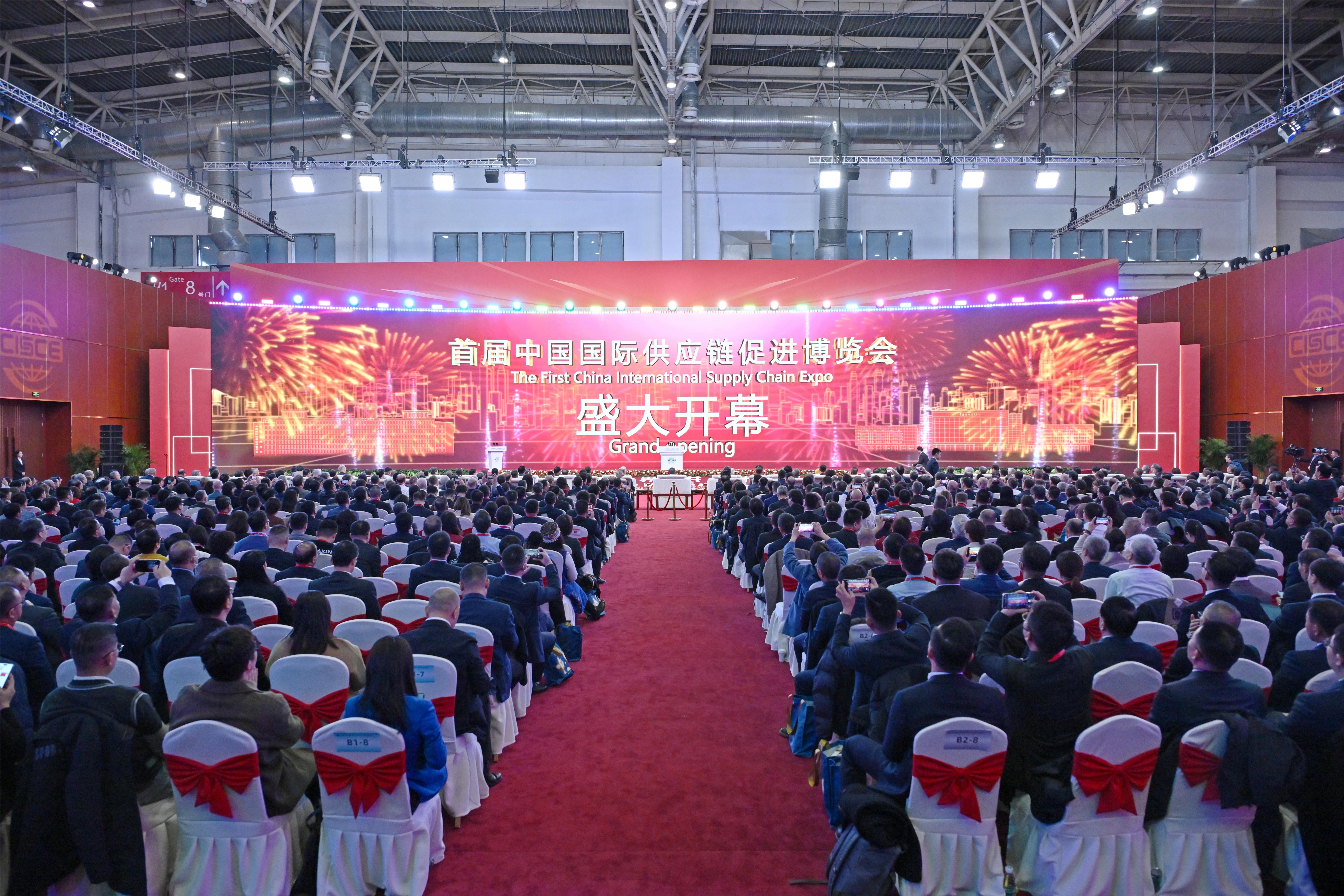 11月28日,首屆中國(guó)國(guó)際供應(yīng)鏈促進(jìn)博覽會(huì)(以下簡(jiǎn)稱“鏈博會(huì)”)開幕式暨全球供應(yīng)鏈創(chuàng)新發(fā)展論壇在北京舉辦。來自世界90多個(gè)國(guó)家、地區(qū)和國(guó)際組織的政商學(xué)等各界代表1100多人出席開幕式。