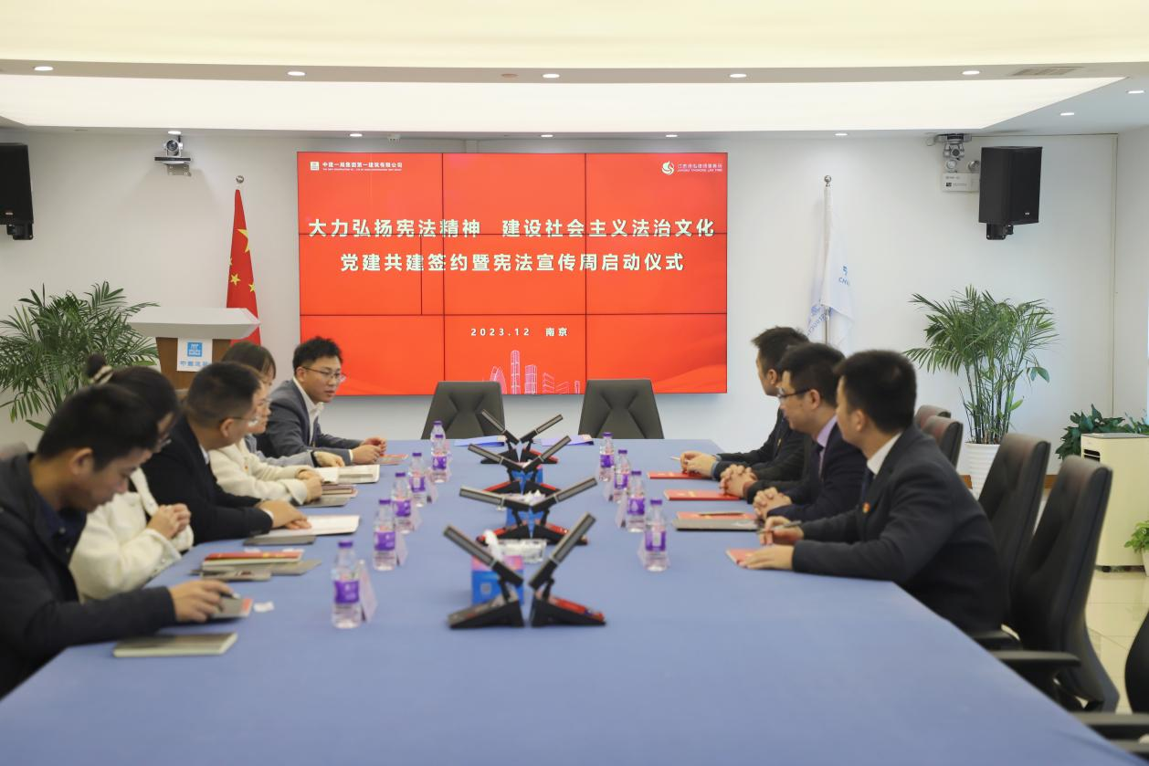 此外,陳世健一行前往江蘇分公司南京安居地鐵四號(hào)線孟北站住宅項(xiàng)目部,與項(xiàng)目黨支部開展黨建共建簽約暨憲法宣傳周啟動(dòng)儀式。陳世健對(duì)國(guó)家憲法進(jìn)行科普并對(duì)相關(guān)知識(shí)展開宣傳,用通俗易懂的語(yǔ)言向項(xiàng)目部的員工們介紹了憲法的地位、作用和意義,并耐心解答了員工們關(guān)心的法律問題。通過(guò)具體案例的解析,他詳細(xì)介紹了如何在日常生活中運(yùn)用憲法來(lái)維護(hù)自己的合法權(quán)益。