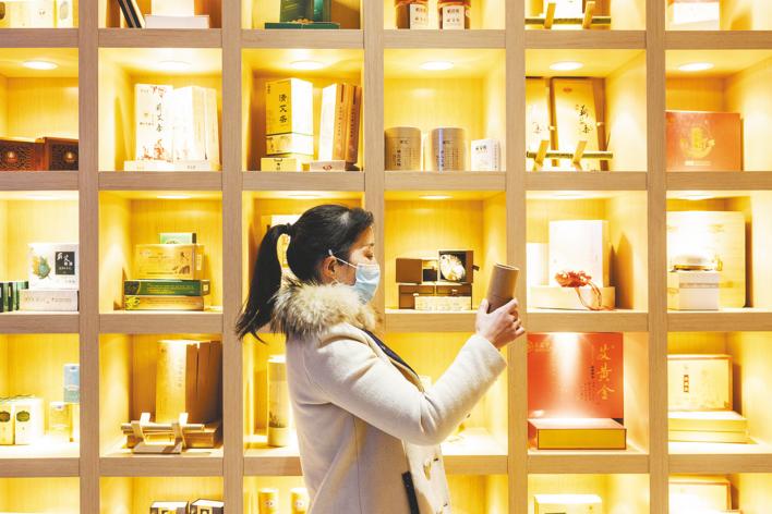 作為茶葉大省,湖北茶品類最為齊全,赤壁青磚茶、宜昌宜紅茶、恩施玉露均有著深厚的歷史淵源。在赤壁青磚茶館,“老古董”有了“新味道”。工作人員現場用青磚茶制作新式奶茶,口感清爽又細膩。