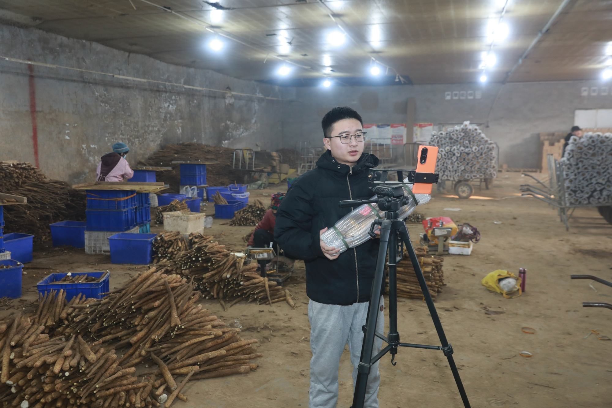 種植戶用直播銷售麻山藥 沈齊 攝