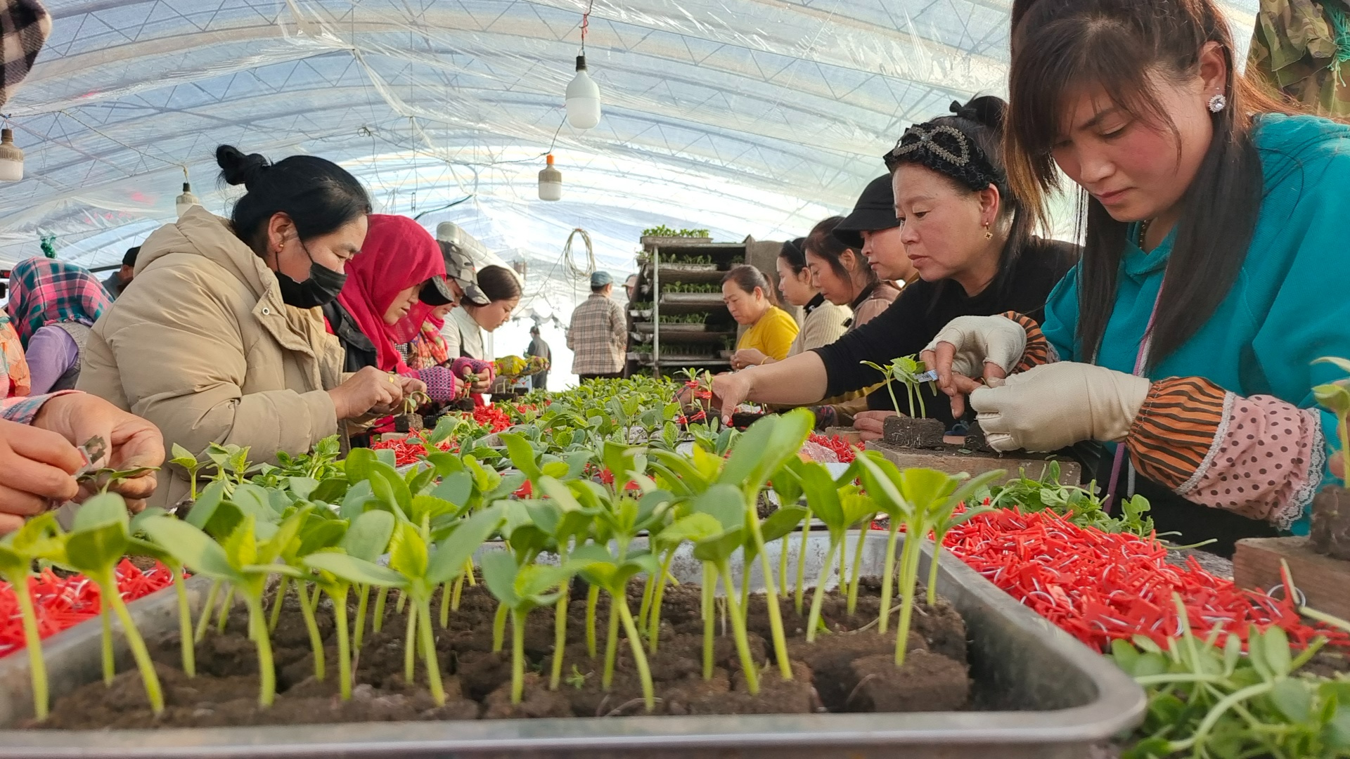 而在德惠市布海鎮(zhèn),瓜農(nóng)們同樣忙碌著。加玉家庭農(nóng)場(chǎng)的香瓜溫室大棚內(nèi),翠綠的瓜苗長(zhǎng)勢(shì)喜人。幾十名工人在嫁接操作臺(tái)上緊張地忙碌著,他們熟練地使用刀片將香瓜幼苗嫁接在哈密瓜根上。這種嫁接培育方式不僅能提高香瓜的抗病能力,還能增加口感和甜度。