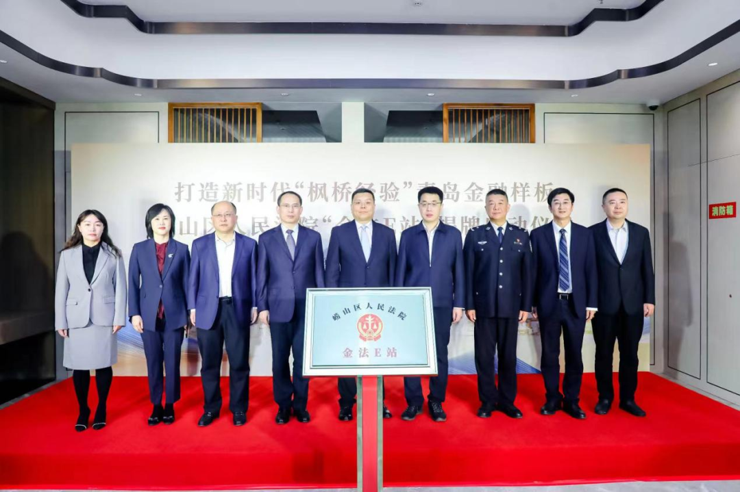 國(guó)家金融監(jiān)督管理總局青島監(jiān)管局、青島金家?guī)X金融聚集區(qū)管理委員會(huì)、青島仲裁委員會(huì)辦公室、嶗山區(qū)人民法院、嶗山公安分局、中國(guó)民生銀行股份有限公司青島分行共同簽訂《打造新時(shí)代“楓橋經(jīng)驗(yàn)”青島樣板聯(lián)建共建協(xié)議》,國(guó)家金融監(jiān)督管理總局青島監(jiān)管局黨委書記、局長(zhǎng)張忠寧與嶗山區(qū)人民法院黨組書記、院長(zhǎng)張堅(jiān)共同為嶗山區(qū)人民法院“金法E站”揭牌?!敖鸱‥站”是嶗山區(qū)人民法院為打造新時(shí)代“楓橋經(jīng)驗(yàn)”青島金融樣板所進(jìn)行的積極實(shí)踐,其兼具訴源治理、訴前調(diào)解、法治宣傳、司法確認(rèn)等多項(xiàng)功能,是一體化、全功能的金融糾紛多元化解平臺(tái)。