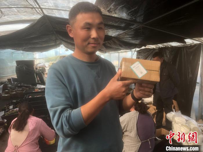 花農(nóng)展示快遞上的“誠(chéng)信標(biāo)簽” 劉林 攝