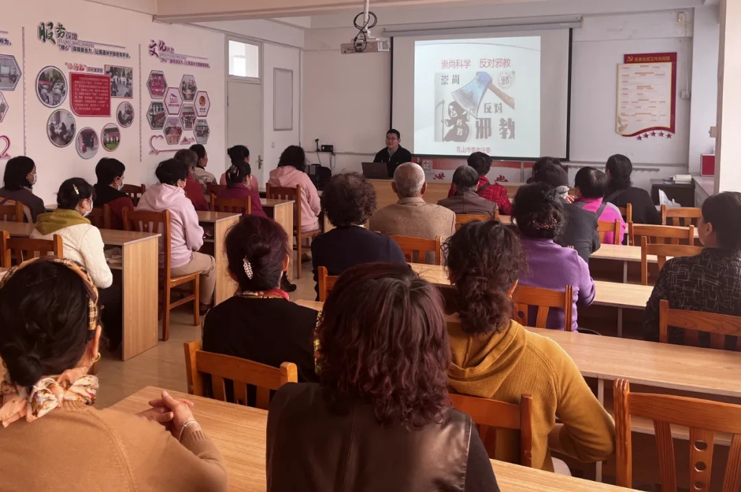 在乳山市城區(qū)街道府前社區(qū),工作人員通過(guò)知識(shí)講座、問(wèn)題解答等形式向社區(qū)群眾進(jìn)行宣傳,引導(dǎo)大家反對(duì)邪教、遠(yuǎn)離邪教、破除迷信、崇尚科學(xué),使社區(qū)群眾認(rèn)識(shí)到邪教的危害及非法性,對(duì)邪教言論做到不聽(tīng)、不信、不傳、不看,積極檢舉揭發(fā)邪教違法犯罪活動(dòng)。