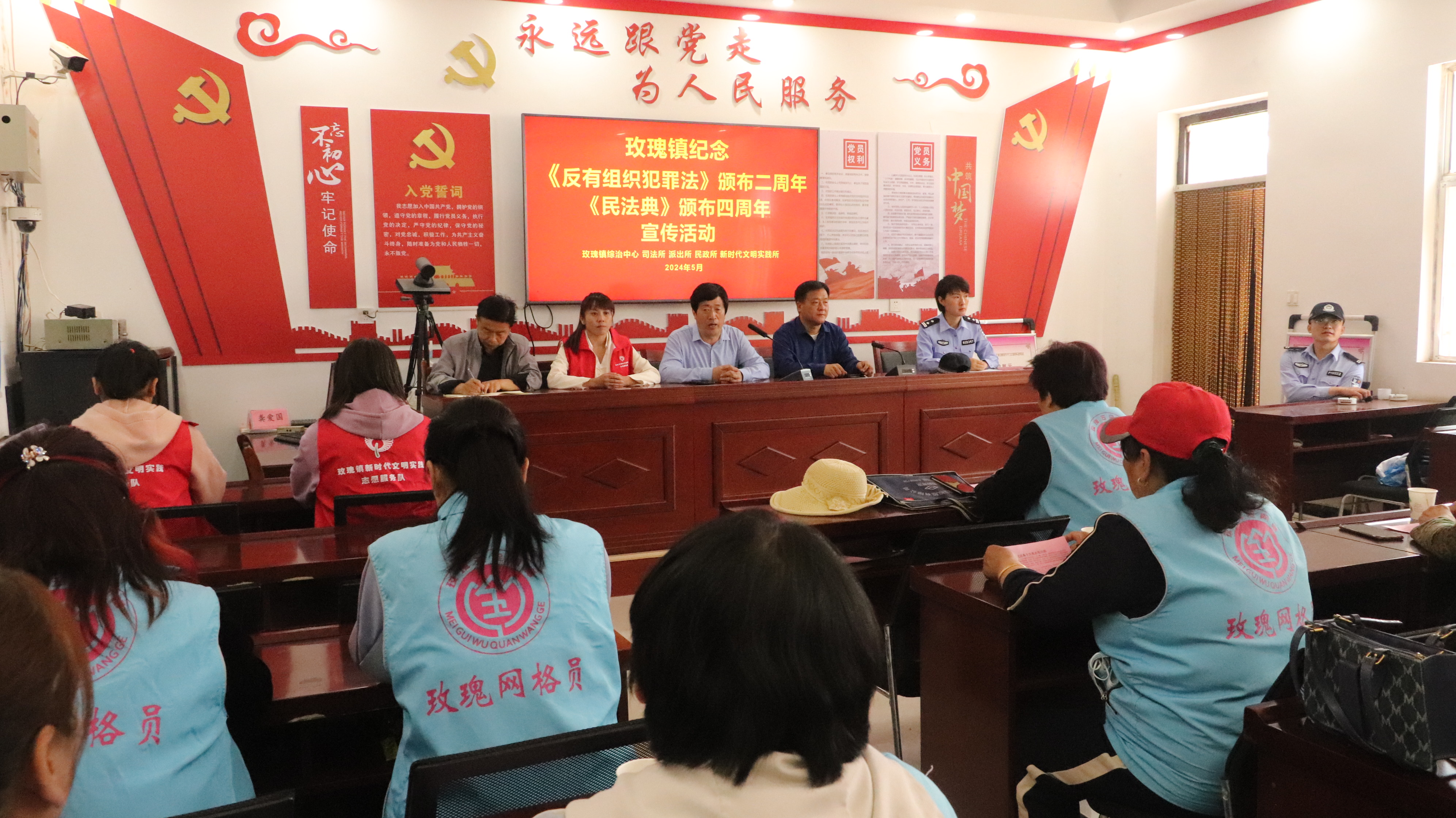 玫瑰拂地紅,普法正當(dāng)時。值《中華人民共和國民法典》頒布四周年、《中華人民共和國反有組織犯罪法》頒布兩周年之際,山東省濟(jì)南市平陰縣玫瑰鎮(zhèn)綜治中心、司法所、派出所、新時代文明實(shí)踐所、社工站等單位,聯(lián)合組織開展了“法潤百格典亮玫瑰”普法宣傳月活動。