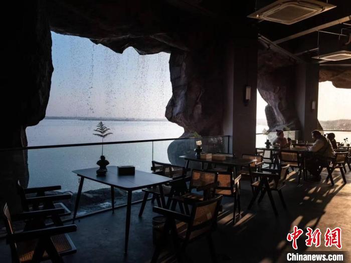 一杯咖啡配一簾水幕瀑布,瀑布咖啡廳位于洞穴內(nèi),坐在室內(nèi)向外望,氣勢(shì)磅礴的瀑布景觀和開闊的江面美景一覽無(wú)余;搭配別致淡雅的裝修風(fēng)格,透露著輕松愜意的氣氛。